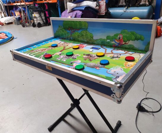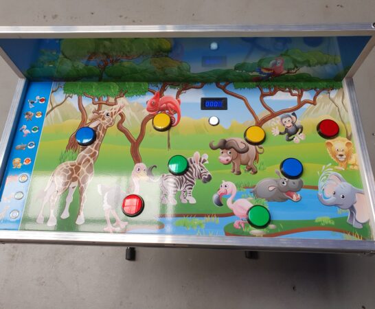 Een flitsend reactiespel voor iedere leeftijd. Willekeurig zal telkens bij een afbeelding aan de zijkant een led oplichten waarna de bijbehorende afbeelding op het bord zo snel als mogelijk moet worden opgezocht. Druk op de knop en vang binnen 1 minuut zoveel mogelijk punten. Voor dit spel heeft u stroom(220V) en een tafel om het spel op te zetten nodig.