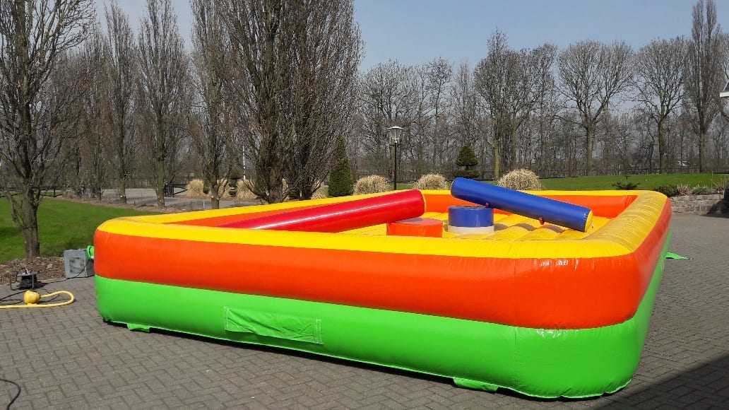 Probeer elkaar door middel van de gladiatorenstok van het schavot af te slaan!