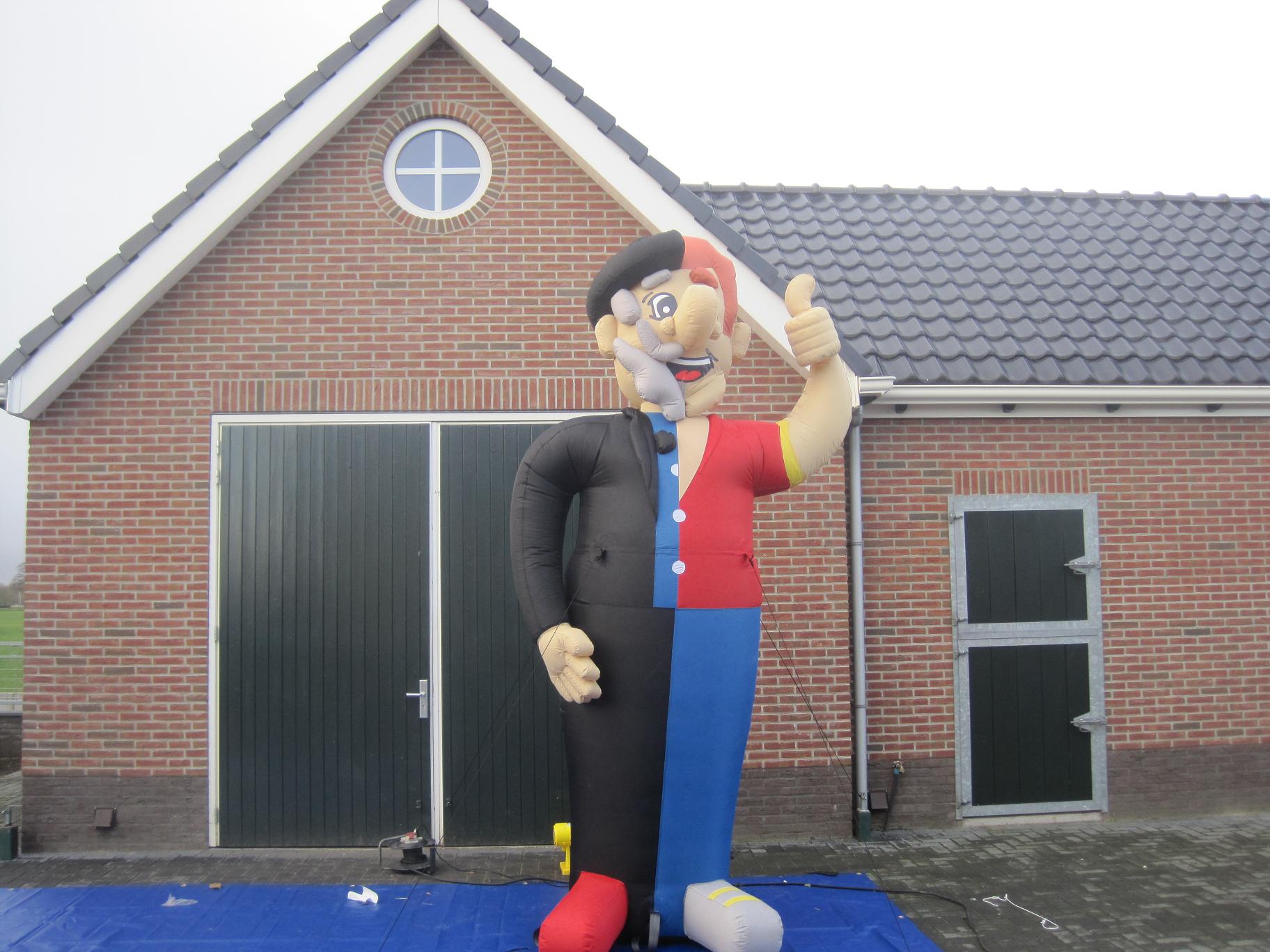 | Deze halve abraham van 3,5 mtr is ludiek bij het bereiken van de 25 jarige leeftijd. De ene helft is jong en de andere helft is “oud”.