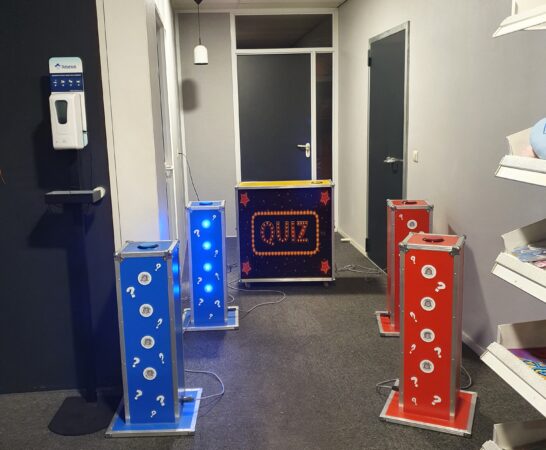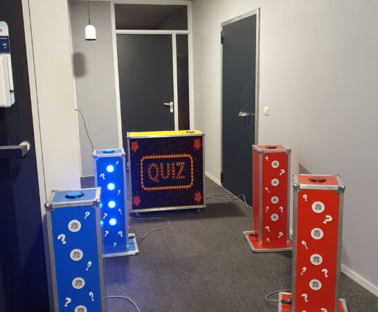 Zeer leuk quiz spel voor 2 teams die tegen elkaar kunnen spelen. Het hart van het spelsysteem bestaat uit de master console waarin de sturing is ondergebracht. Hierop worden met een connector de consoles voor de spelers aangesloten. In de spelersconsoles zit een grote drukknop (3 ultra bright led lampen) plus een zoemer.