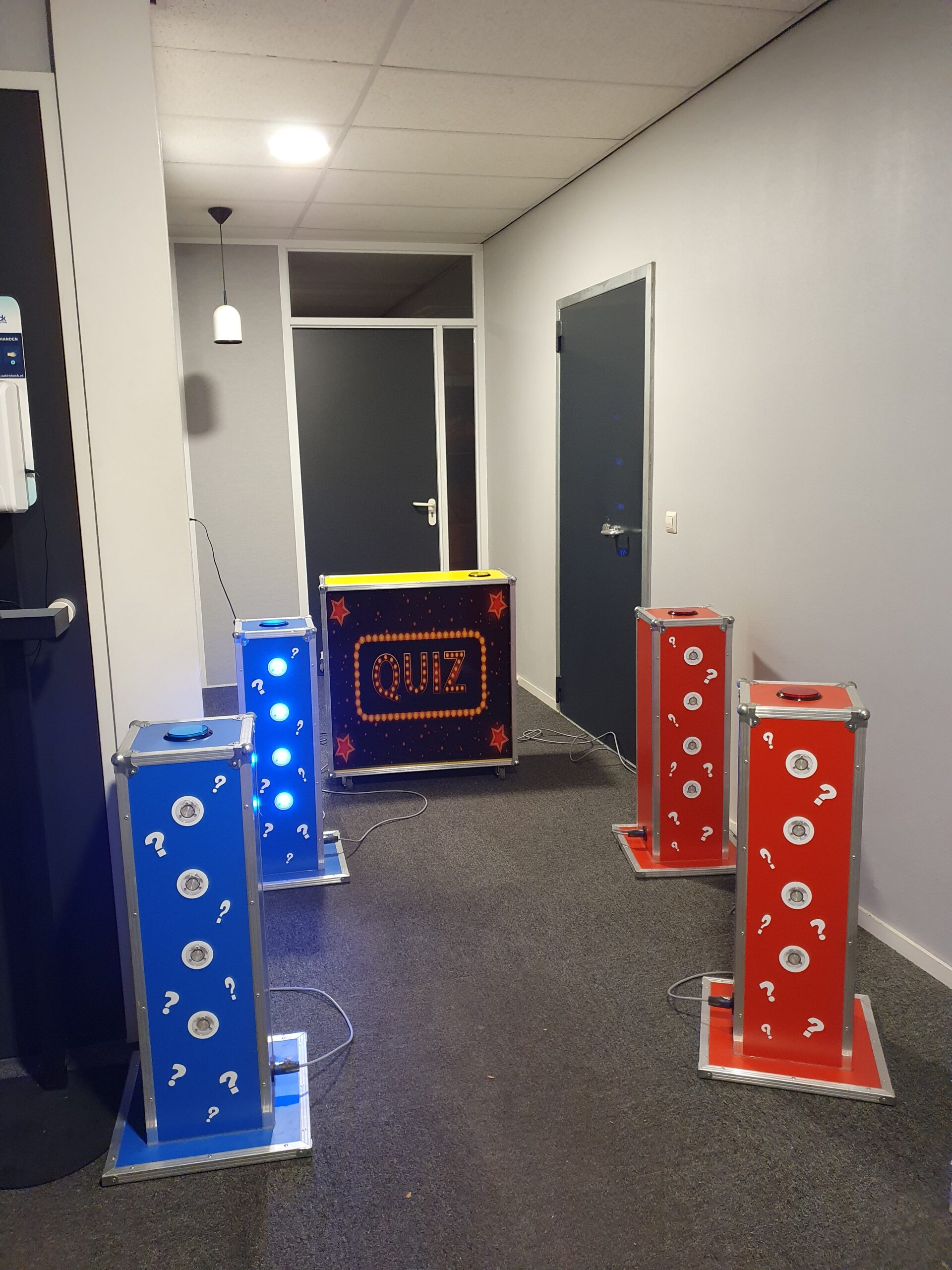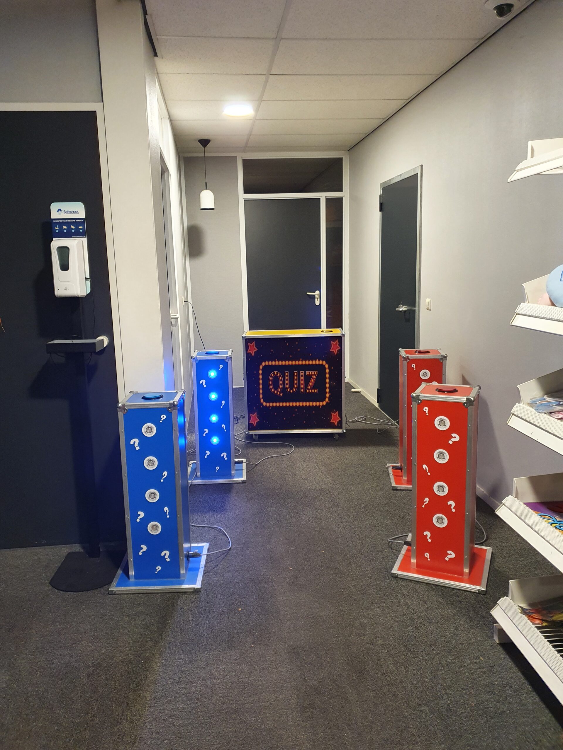 Zeer leuk quiz spel voor 2 teams die tegen elkaar kunnen spelen. Het hart van het spelsysteem bestaat uit de master console waarin de sturing is ondergebracht. Hierop worden met een connector de consoles voor de spelers aangesloten. In de spelersconsoles zit een grote drukknop (3 ultra bright led lampen) plus een zoemer.