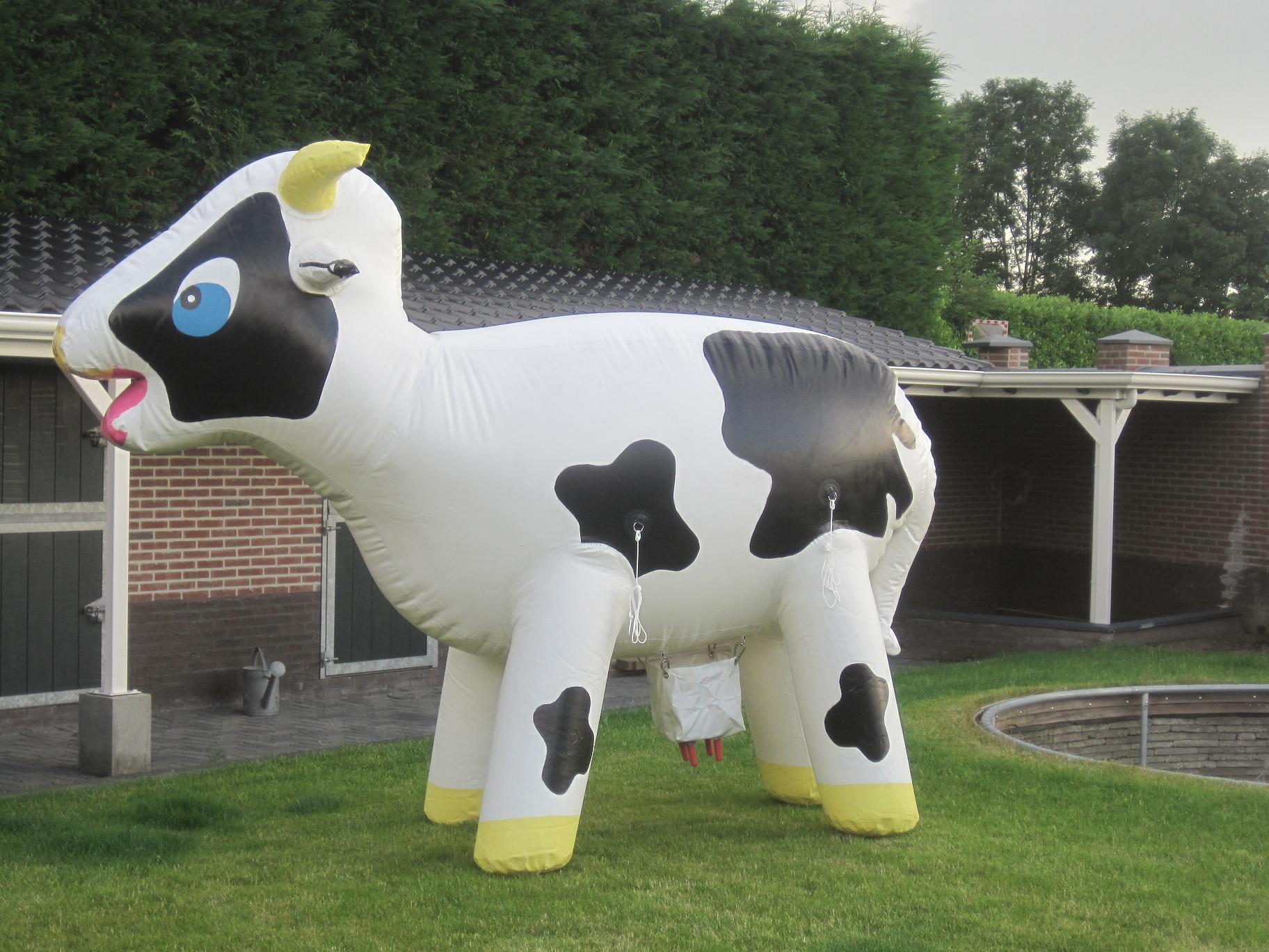 De alom bekende melkkoe, maar dan in opgeblazen vorm. De Ranja Koe is een attractie voor zowel jong als oud. Je kunt wedstrijdjes doen wie als eerste de emmer vol heeft of wie in een bepaalde tijd zoveel mogelijk gemolken heeft. De Ranja Koe is een leuke attractie die goed te combineren is met een springkussen of een zeskampspel. De koe is 2,3 meter hoog en 2,8 mtr lang.