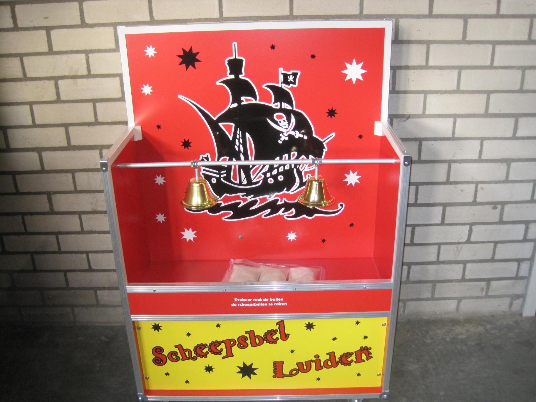 Luid de Scheepsbel door vanaf een afstandje met de bijgeleverde zakjes tegen de bellen te gooien.