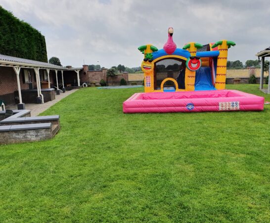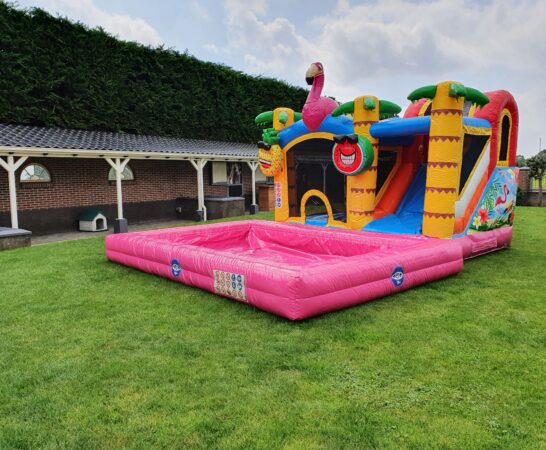 Dit super leuke springkussen happy flamingo met zwembad is geschikt voor 6 kinderen.