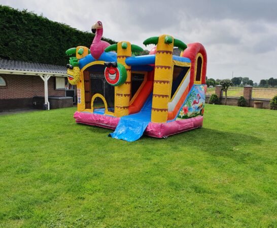 Dit super leuke springkussen happy flamingo is geschikt voor 6 kinderen.