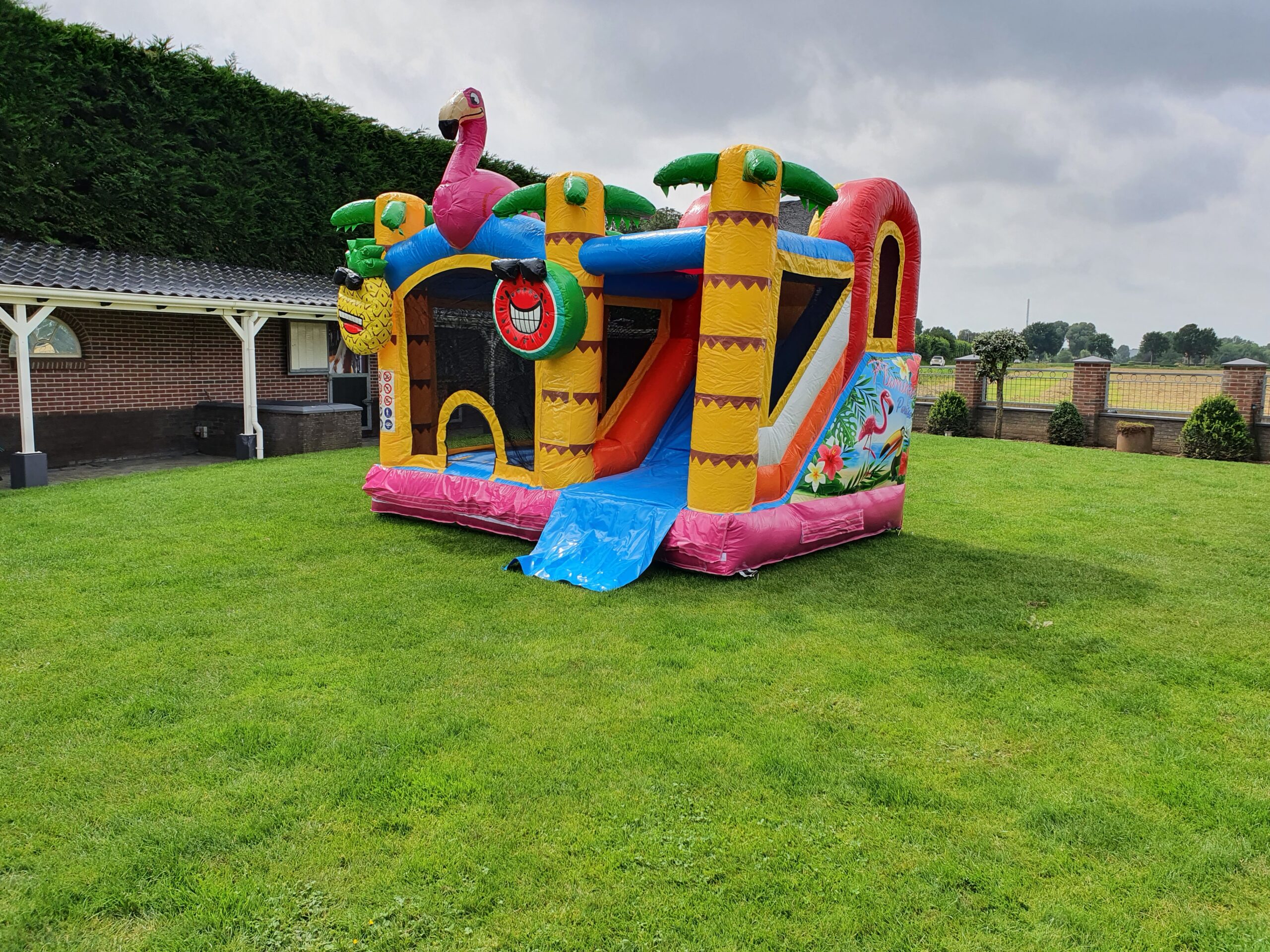 Dit super leuke springkussen happy flamingo is geschikt voor 6 kinderen.