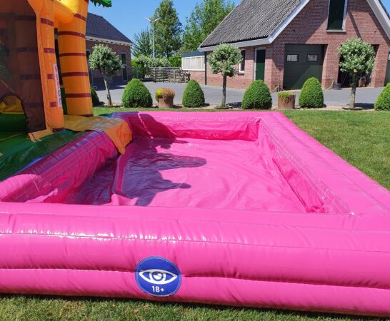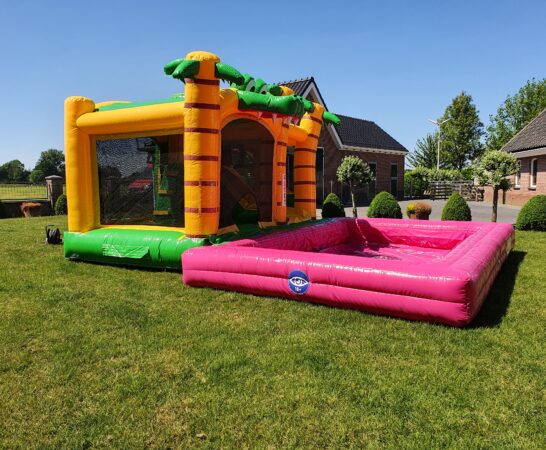 De totale afmeting van het springkussen met zwembad zijn 5,5 m x 4,4 m ( L x B)