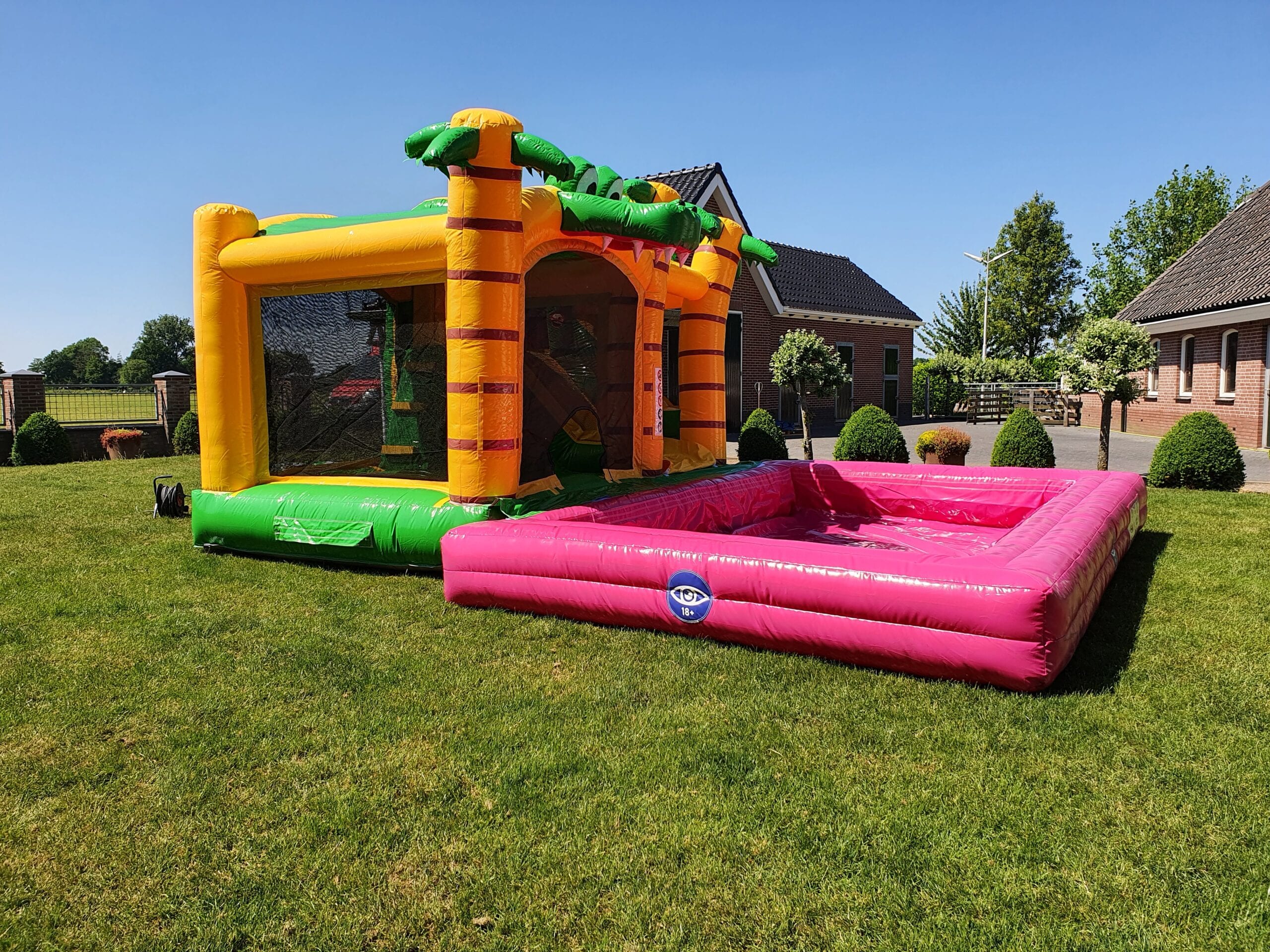 De totale afmeting van het springkussen met zwembad zijn 5,5 m x 4,4 m ( L x B)