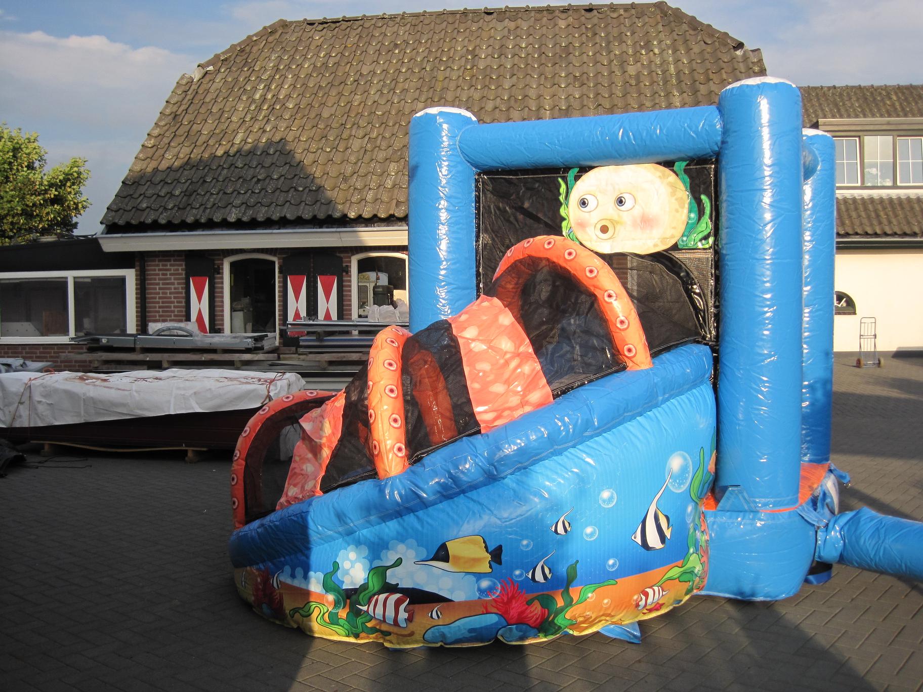 Springkussen zee mini heeft veel speel-en springvermogen door de halfronde glijbaan die van de zijde naar voren toe glijdt. Afmeting van het springkussen is 3,1 X 3,5 X 2,6 en is geschikt voor ongeveer 4-5 personen.